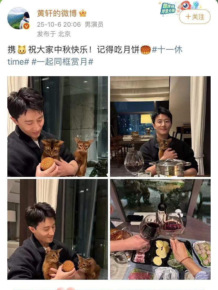 黄轩40岁了,1985年出生,女友视觉下的他看起来状态很不错,皮肤紧致细腻,在他怀里的小猫也是超级可爱。桌上有火锅,还有牛肉,更有月饼和红酒。不拍戏,在家和女友享受二人世界,也是很幸福甜蜜。